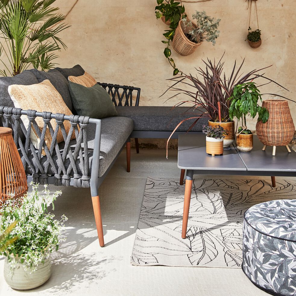 Canap d angle de jardin en bois et tissu gris Sumber : www.alinea.com
